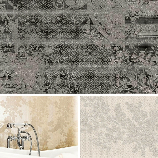 Dopełnieniem stylu shabby są motywy kwiatowe, stare koronki i hafty, nadające wnętrzu przytulny klimat. Romantyczną łazienkową aranżację stworzą dekory Traverhome Petal marki Ceramstic ozdobione postarzanym, kwiatowym rysunkiem utrzymanym w ciepłych kremowo-brązowych barwach. Kolekcję uzupełniają płytki bazowe inspirowane naturalnym trawertynem. Kwiaty odnajdziemy również na dekorach Attic Poem z kolekcji „betonowych” gresów w odcieniach mocca. Motyw subtelnej koronki wykorzystali natomiast twórców płytek Cabaret z kolekcji Bohemian. Delikatny ornament utrzymany w rozbielonych odcieniach fioletu przypomina tiulową woalkę. Ciekawą interpretacją koronkowego motywu jest gres szkliwiony Loft Carpet. Misterny rysunek wygląda jakby został odciśnięty w betonie. Delikatny, romantyczny wzór kontrastuje z surową szarością płytki tworząc niepowtarzalny efekt aranżacyjny. Spodoba się wszystkim, którzy stawiają na nieoczywiste połączenia i lubią zabawę konwencjami.