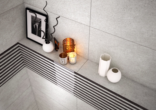 Kolekcja Dusk obejmuje płytki w kilku uzupełniających się wymiarach, które można łączyć ze sobą na różne sposoby, uzyskując nieregularne, geometryczne układy. Subtelna zabawa rozmiarami zbuduje ciekawą przestrzeń np. w małej łazience czy przedpokoju. Do dyspozycji mamy wersje podłużną 45×90 cm i 29×60 cm; kwadratową 60×60 cm, a także wyrazistą mozaikę w paski 29×29,5 cm. Wszystkie elementy kolekcji są uniwersalne, poza mozaiką można stosować je zarówno na podłodze, jak i na ścianie. Płytki są rektyfikowane, umożliwiają położenie fugi o minimalnej grubości, co w bonusie oznacza mniej zabrudzeń i możliwych wyszczerbień.