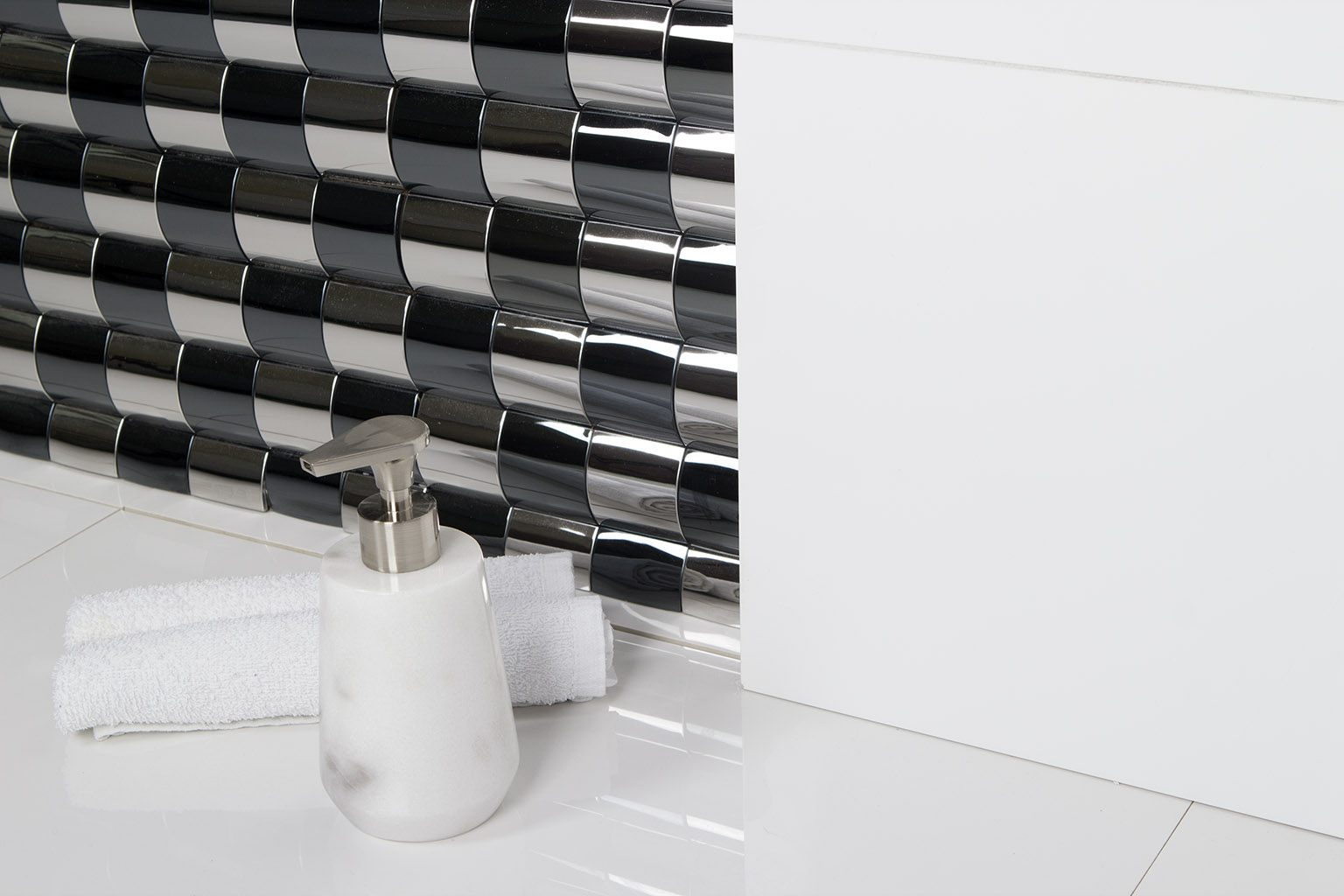 Nieoczywistym elementem dekoracyjnym nowoczesnego wnętrza może być metal. Mozaiki marki Ceramstic przypadną do gustu tym, którzy lubią nieszablonowe rozwiązania. Metal dzięki swojej wytrzymałości i solidnej strukturze świetnie sprawdzi się w łazience, ale dobrze komponuje się także w większych pomieszczeniach: np. nowoczesnym salonie lub futurystycznej sypialni. Mozaika Jazz Copper marki Ceramstic w kolorze miedzi perfekcyjnie współgra z wnętrzami utrzymanymi w odcieniach beży, brązów i bieli. Natomiast srebrne Flash Metal, Chess czy Inox Minx w połączeniu z klasyczną czernią i bielą z pewnością nadadzą wnętrzu ekstrawagancki charakter.