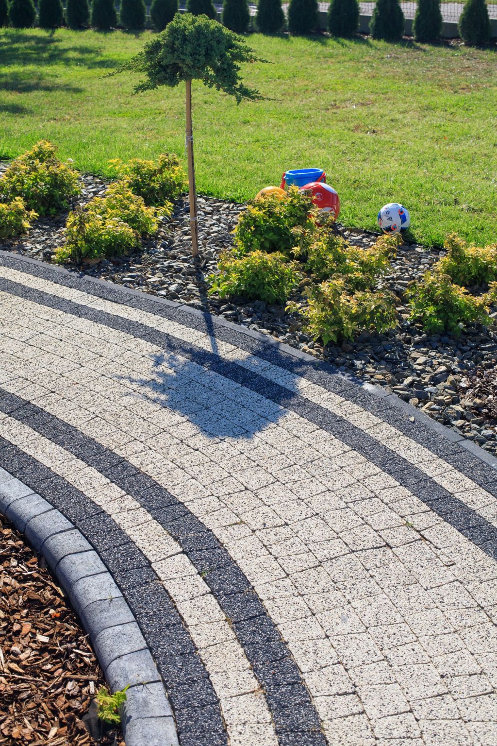 W aranżacjach nowoczesnych, klasycznych i skandynawskich na ogrodowych alejkach dobrze prezentują się kostki w odcieniach szarości, takie jak Polbruk Napoli, Trento, Avanti czy Petra o fakturze płukanej. Jeśli jednak ogród bardziej przypomina klimatem region śródziemnomorski, to warto zastanowić się nad Avanti w fakturze płukanej w kolorach żółtym lub czerwonym, czy też Trento w kolorze żółtym. Wyżej wymienione kostki mają jeszcze jedną olbrzymią zaletę. Poszczególne elementy posiadają niewielkie rozmiary, dlatego po ułożeniu nawierzchni, powstaną pomiędzy nimi „fugi”. Wpływa to pozytywnie na antypoślizgowość całej alejki. Plusem niewielkiego rozmiaru elementów jest też swoboda układania z nich zakrętów. Może być to przydatne przy „wypłaszczeniach” nawierzchni zlokalizowanych pomiędzy dwoma pochylniami orientowanymi w przeciwnych kierunkach.