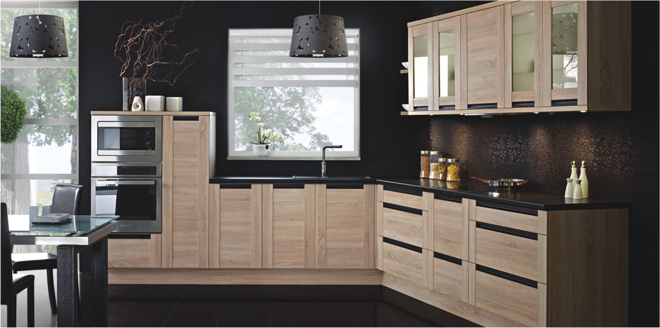 Szkło nie tylko jest szykowne i reprezentacyjne, ale podobnie jak dekory drewna, jest uniwersalne i ma ponadczasowy charakter. Prosta kuchnia w wiejskim stylu, klasyczna w stylistyce dyskretnej elegancji czy nowoczesna w industrialnym klimacie – w każdej z tych aranżacji szkło doskonale pasuje i będzie fantastycznym ozdobnikiem zabudowy meblowej. To materiał, który bardzo dobrze komponuje się z pozostałymi elementami wystroju wnętrza, dlatego można go dowolnie łączyć z drewnem, kamieniem czy powierzchniami lakierowanymi, zarówno w wykończeniu matowym jak i wysokim połysku.