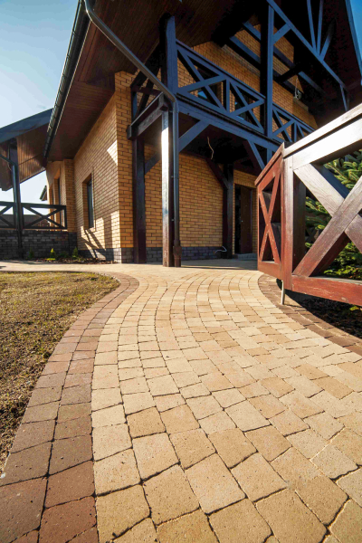 4. Dojście do budynku brukowane jaśniejszą kostką w tej samej tonacji kolorystycznej